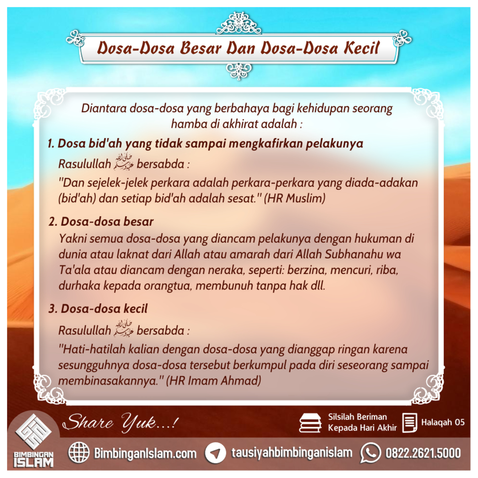 Halaqah yang ke-5 dari Silsilah Beriman Kepada Hari Akhir adalah tentang “Dosa-dosa Besar dan Dosa-dosa Kecil”