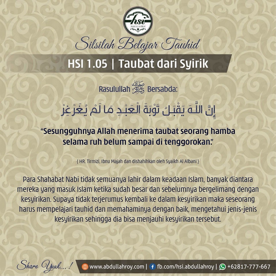 Halaqah yang ke-5 dari silsilah ilmiyyah belajar Tauhid adalah tentang Taubat Dari Kesyirikan