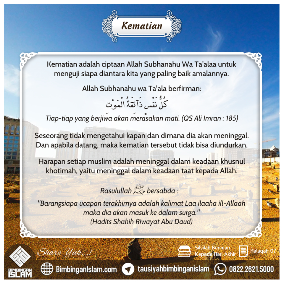 Halaqah yang ke-7 dari Silsilah Beriman Kepada Hari Akhir adalah tentang “Kematian”