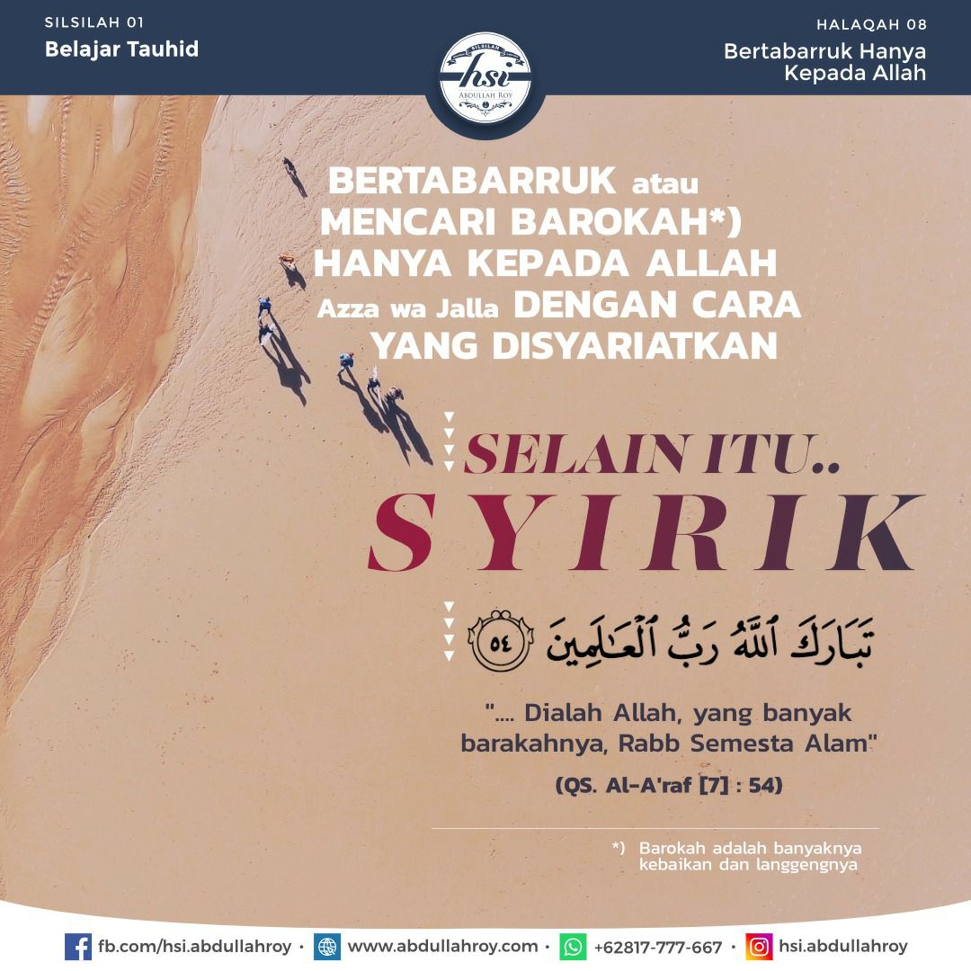 Halaqah yang ke-8 dari Silsilah Ilmiyyah Belajar Tauhid adalah tentang Bertabarruk (mencari barokah)