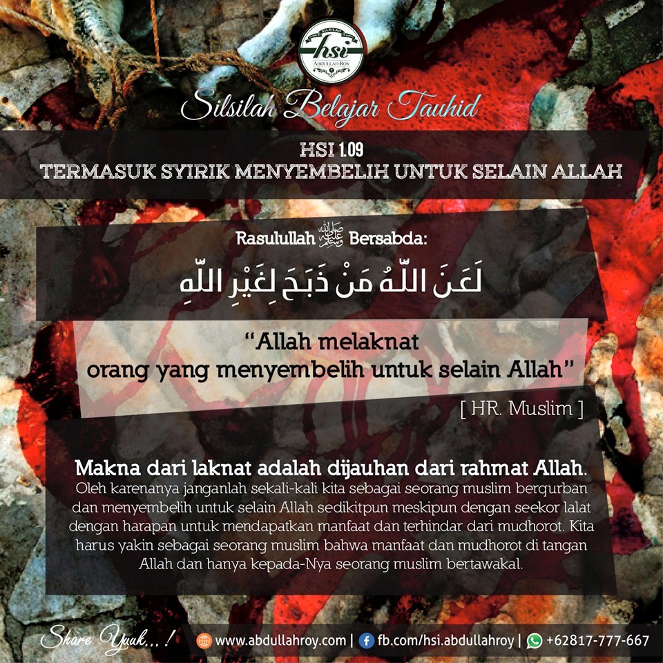“Allāh melaknat seseorang yang menyembelih untuk selain Allāh” (HR. Muslim).