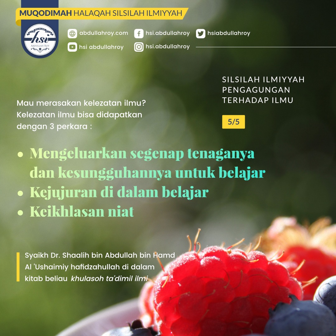 Tidak mungkin seseorang mencapai derajat ilmu kecuali apabila kelezatan dia yang paling besar ada di dalam ilmu, dan kelezatan ilmu bisa didapatkan dengan 3 perkara:
