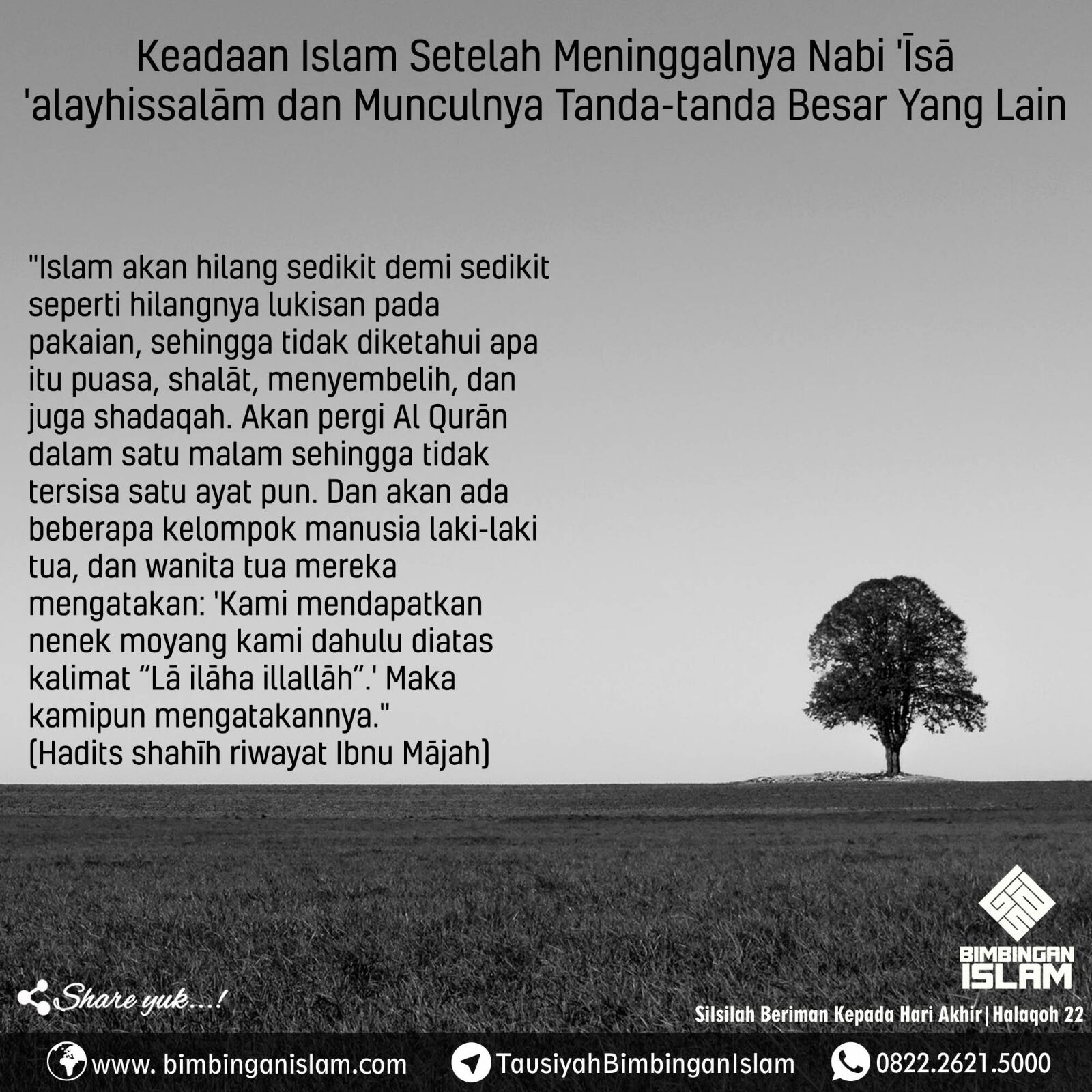 Halaqah yang ke-22 dari Silsilah Beriman Kepada Hari Akhir adalah tentang “Keadaan Islam Setelah Meninggalnya Nabi ‘Isa ‘alaihissalam”