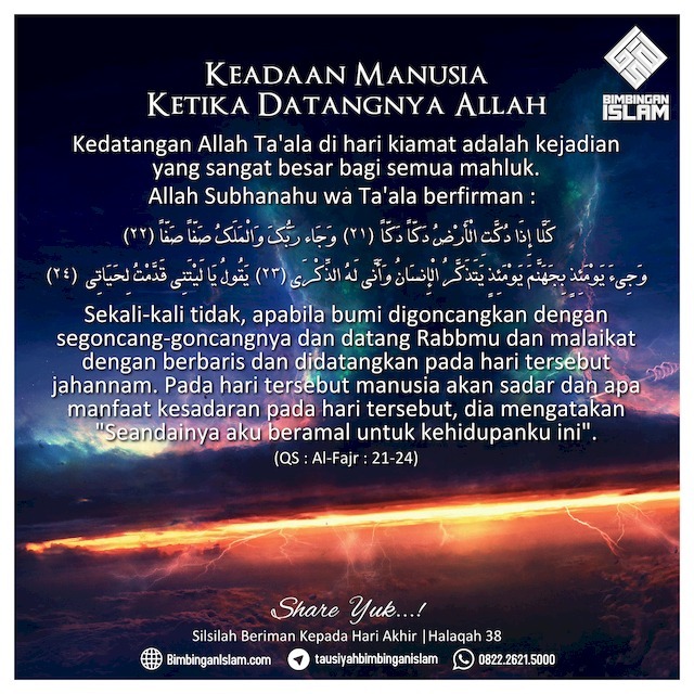 Halaqah – 38 Keadaan Manusia Ketika Datangnya Allah ﷻ